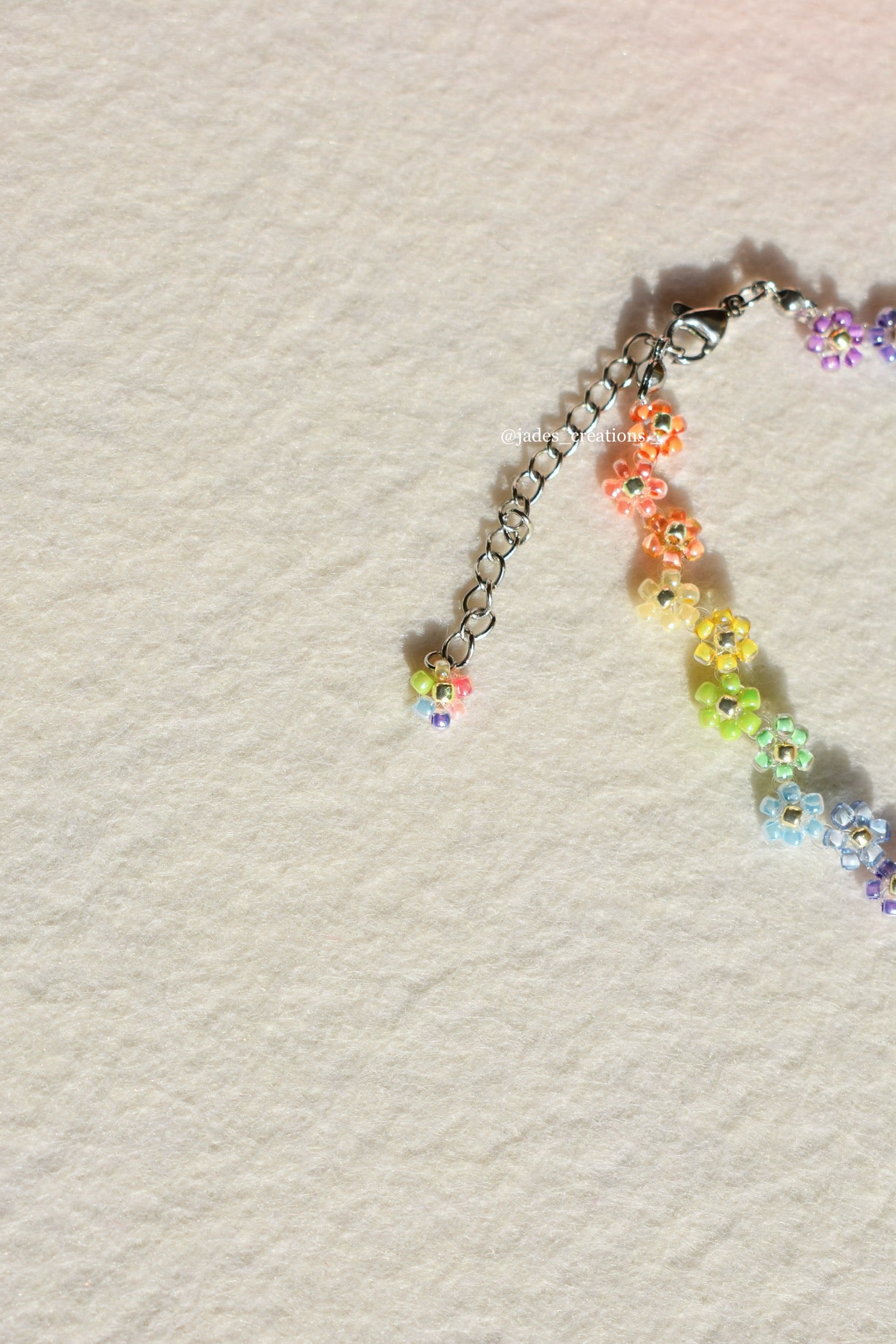 Bracciale floreale motivo zig zag realizzato con perline di vetro di alta qualità.