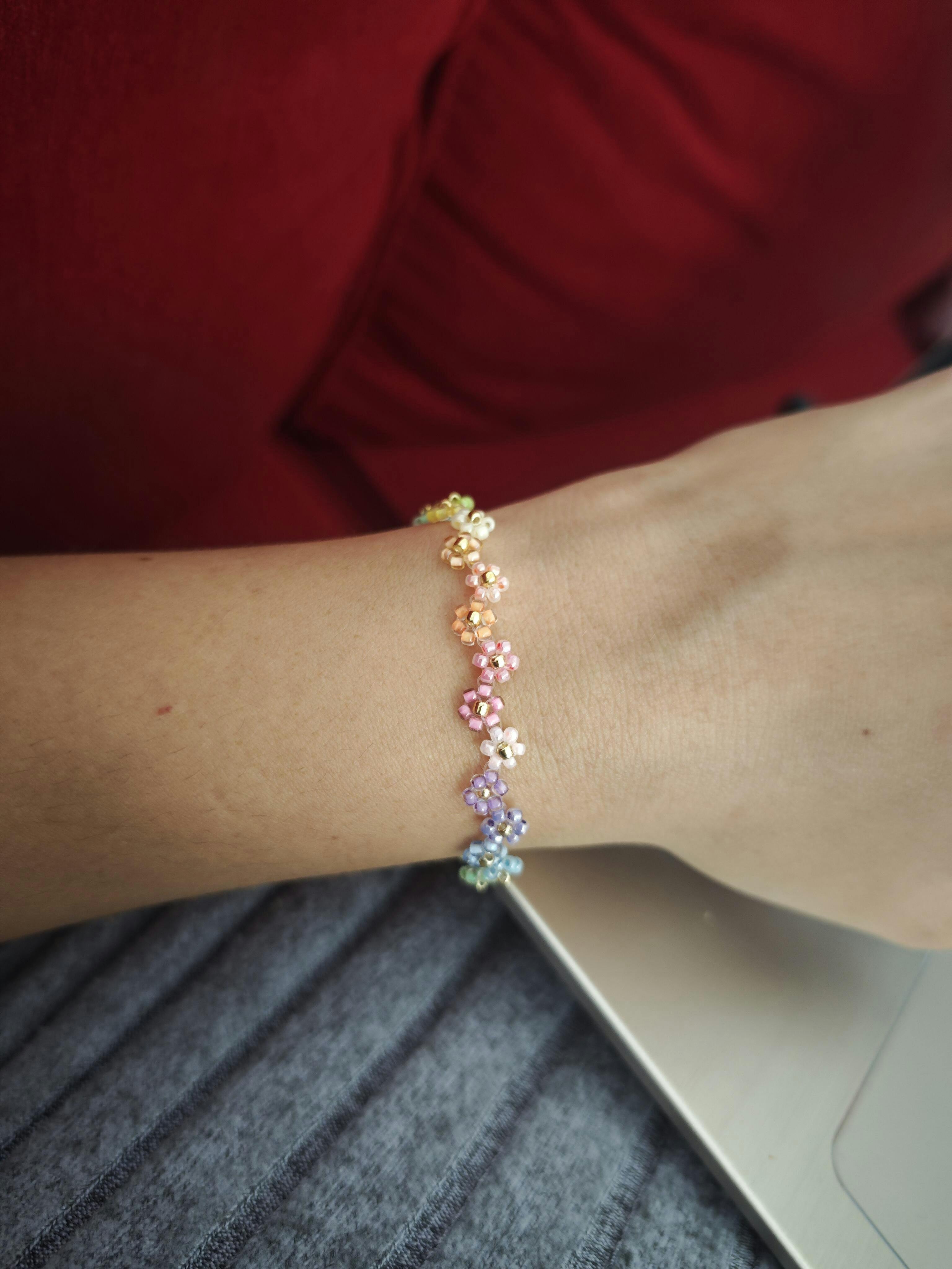 Bracciale floreale motivo zig zag realizzato con perline di vetro di alta qualità.