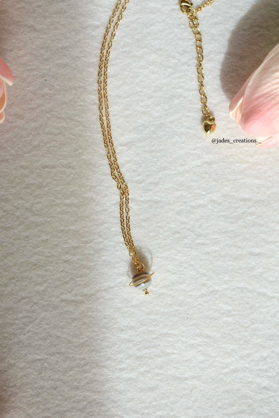 Collana in acciaio inox 304 con ciondolo saturno in Agata Botswana fatto a mano.