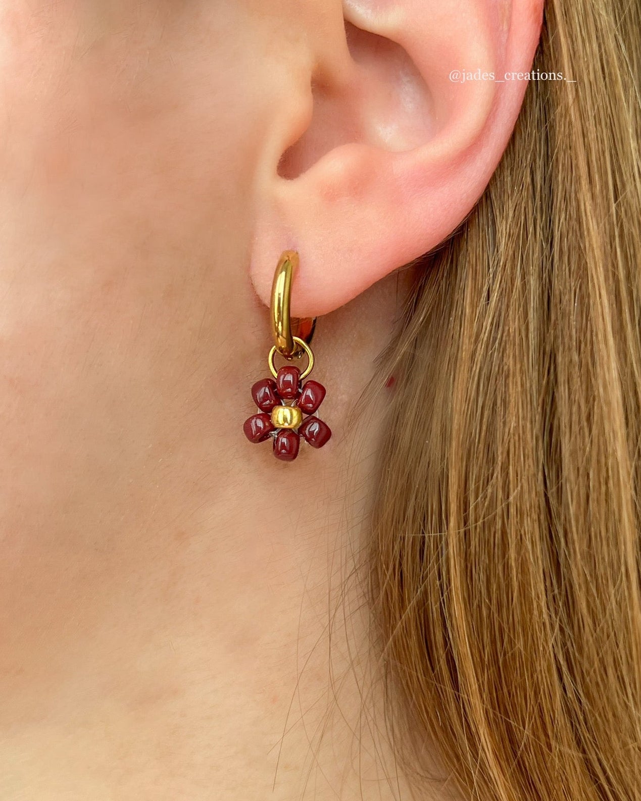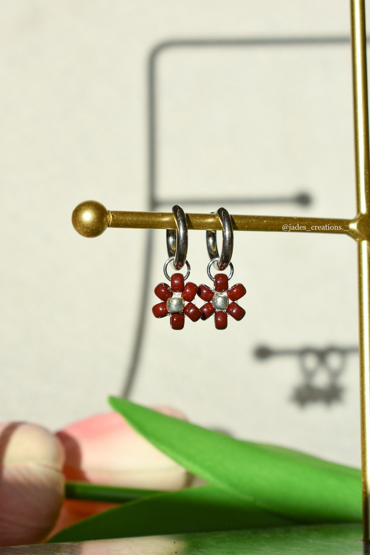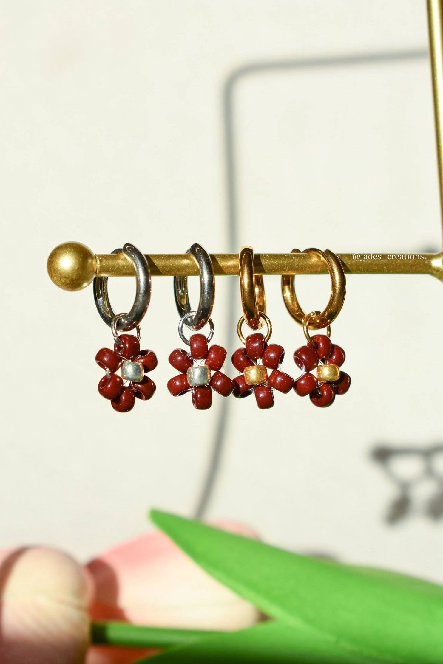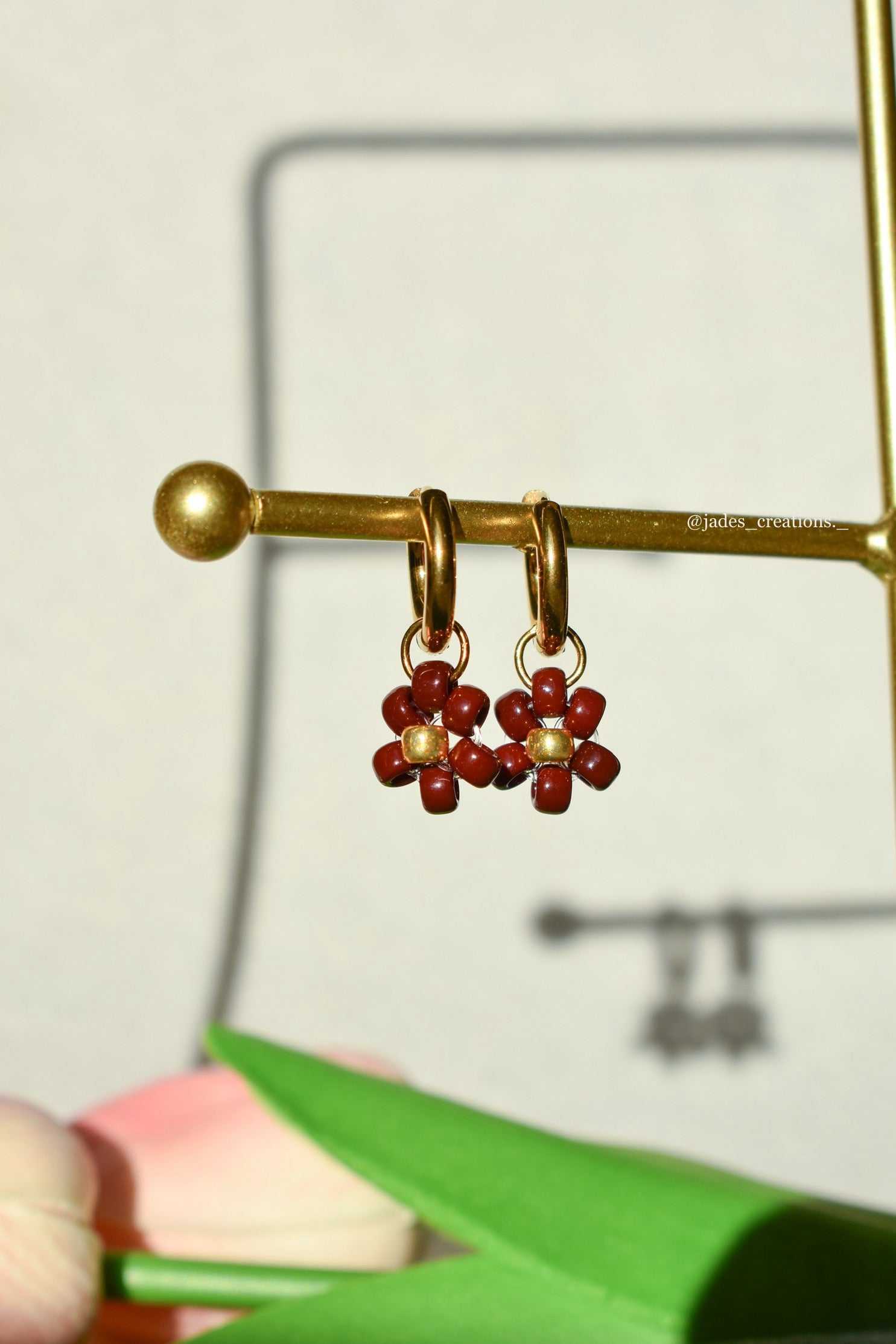 Orecchini floreali con fiori color cioccolato realizzati con perline di vetro di alta qualità.✨